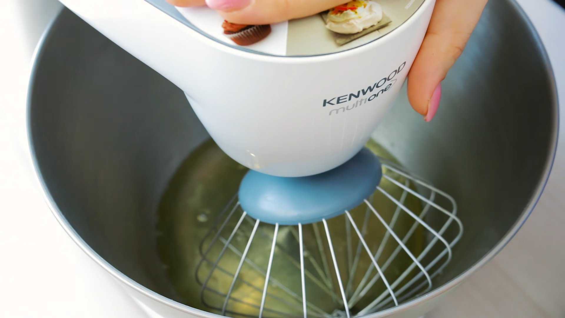 В чашу миксера разбейте яйца и добавьте туда щепотку соли. Взбивайте сначала на минимальной скорости, постепенно увеличивая до средней.