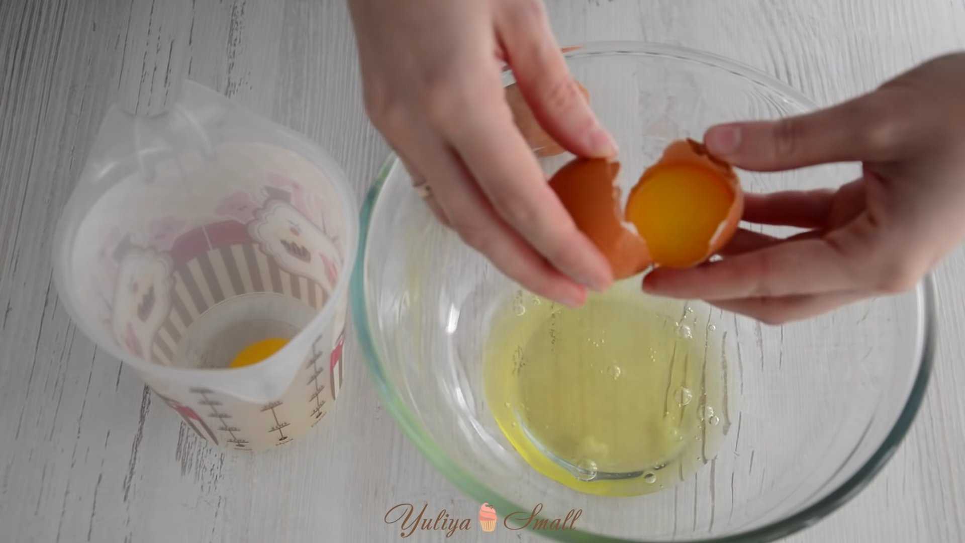 Обратите внимание, что для приготовления теста используем четыре желтка и шесть белков