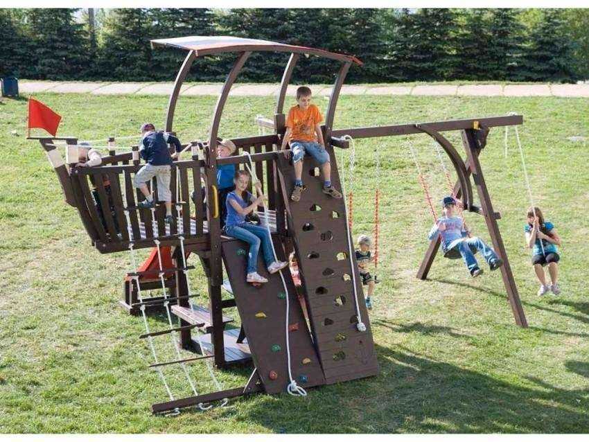Спортивная площадка в виде корабля. Дети с удовольствием будут его брать на абордаж.