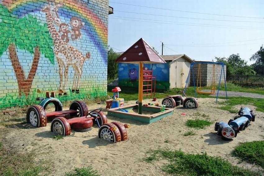 Фотогалерея: песочница из старой покрышки, в виде машины и другие варианты