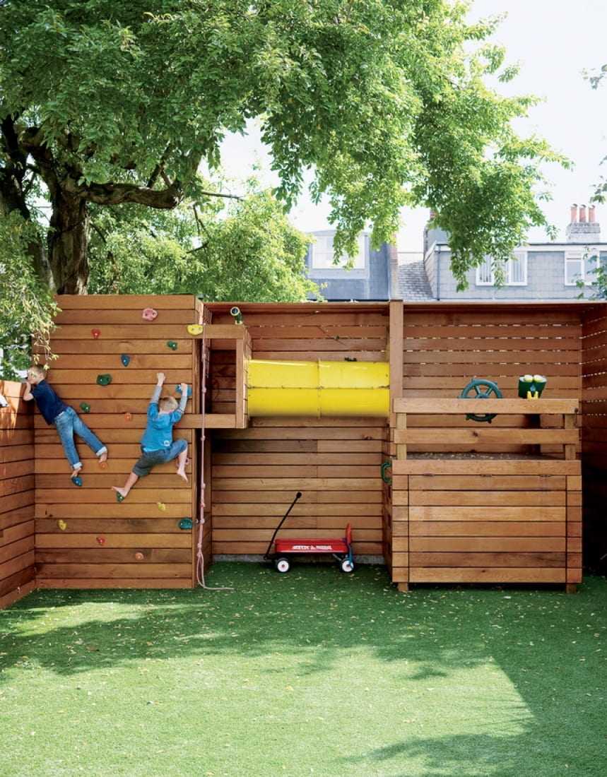 Придомовой участок должен ассоциироваться прежде всего с безопасной детской площадкой, на которой можно играть в разные игры. Ведь фантазия у малышей такая, что они в любом месте могут резвиться часами. В этом случае — безопасность сооружения, должна быть под тщательным контролем. Это касается прежде всего спортивных конструкций, на которых играют маленькие дети.