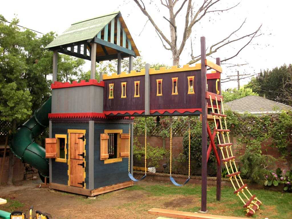 Высокие строения с различными лазейками, канатами, горкой сделают тело ребенка сильнее, терпеливее, спортивнее. Соорудив игровую детскую площадку своими руками, можно спокойно отдыхать не переживая за безопасность своих отпрысков.