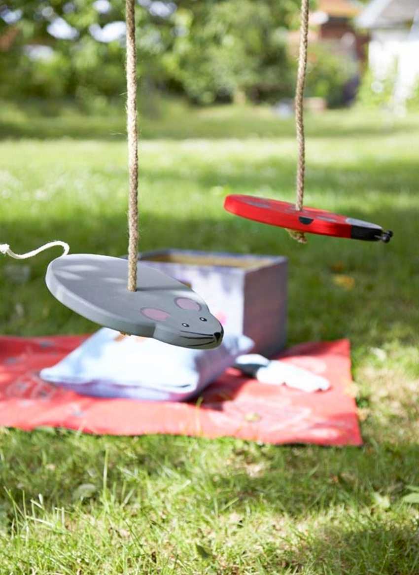 Детские качели из дерева, созданные своими руками, в виде мыши и жука