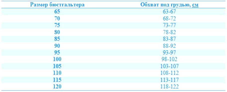 Таблица размеров бюстгальтеров