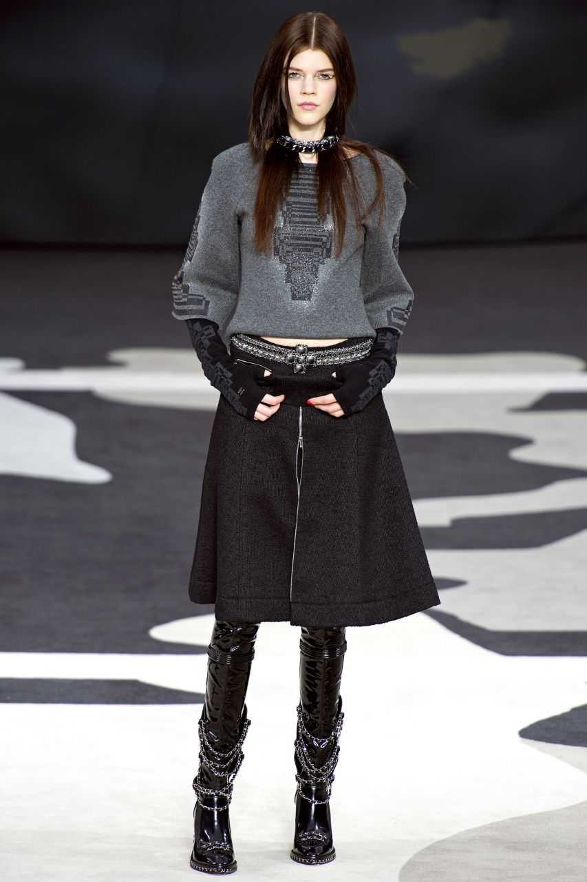 Еще один total look с кюлотами, но только в сером варианте. Данный пример, как нельзя лучше показывает, что, несмотря на то, что акцент сделан на джемпере, ведущую роль в ансамбле все же играют кюлоты.