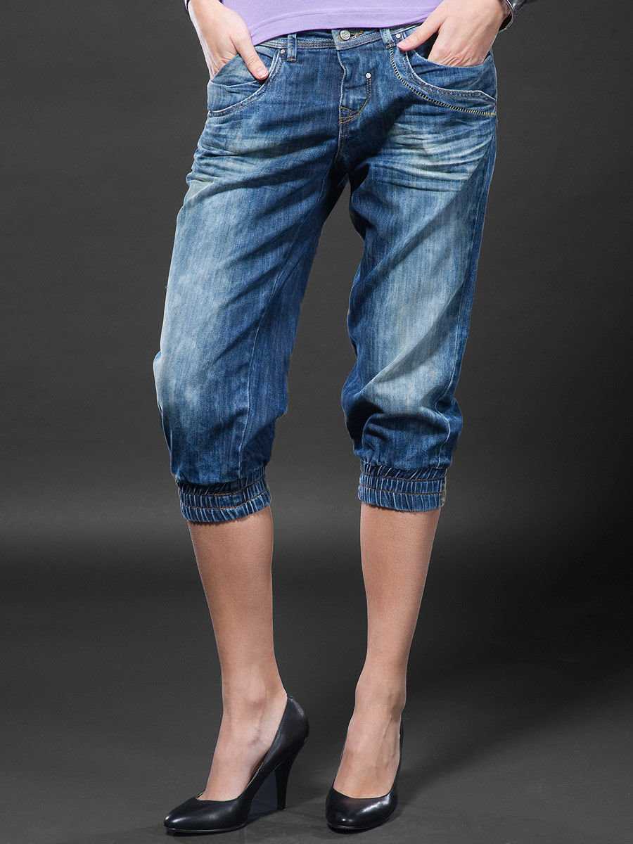 Сделанные из джинсов женские бриджи дают простор для фантазии в плане декора. Модницы могут дополнить самодельные укороченные штаны гламурными стразами, цветными бусинами, сверкающими пайетками. Обычно этими элементами украшают карманы, швы и манжеты бриджей. Главное – не переусердствовать. Нашивки и готовая вышивка также помогут быстро преобразить обновку.