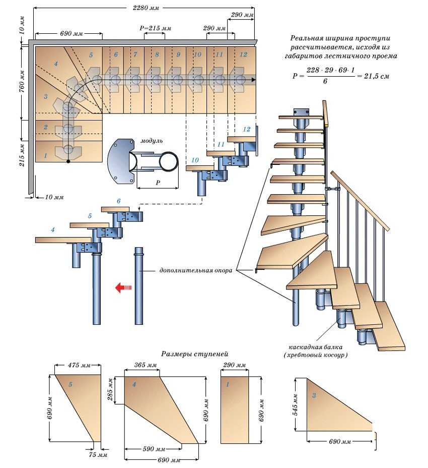 Монтаж модульной лестницы заводского изготовления легко осуществить самостоятельно
