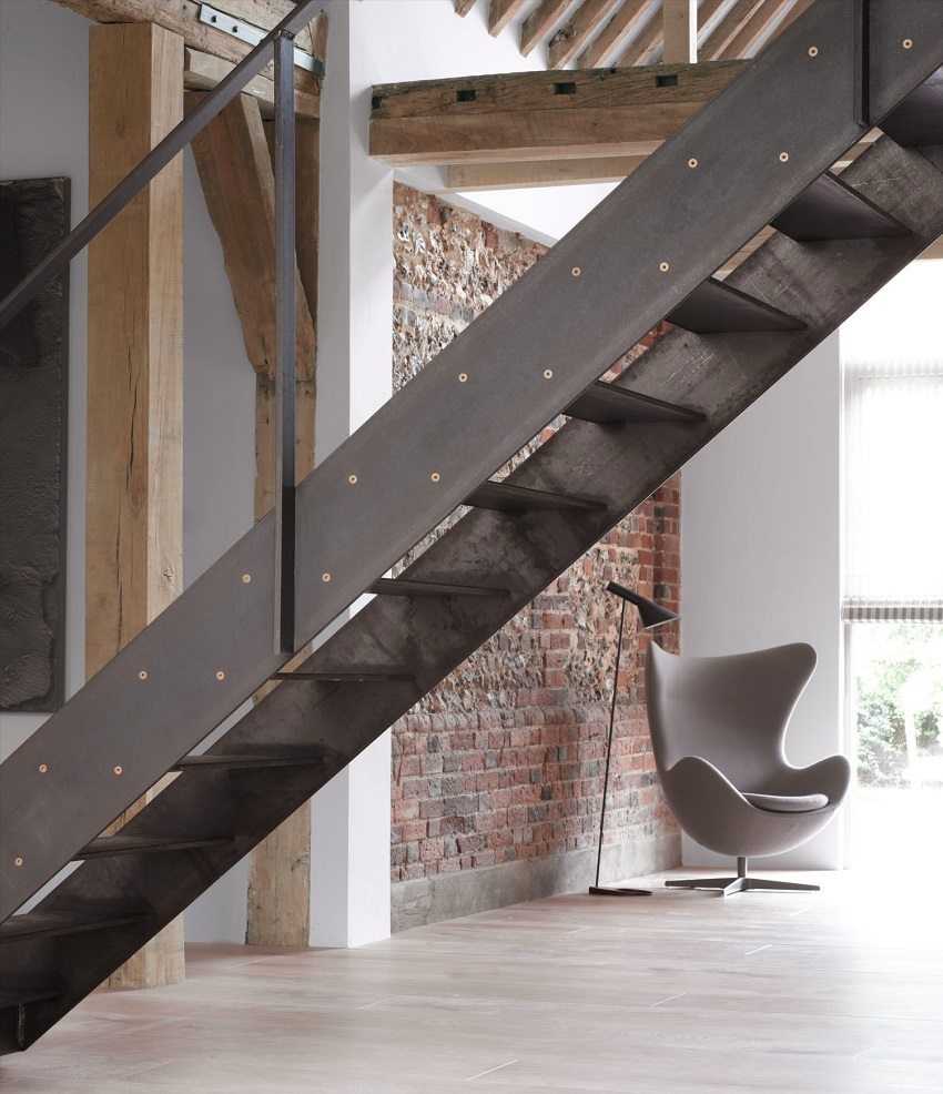 Основным преимуществом лестниц на металлическом каркасе является возможность объединить различные материалы в самых разнообразных комбинациях. Вместе с тем лестницы на каркасе из металла прочны, долговечны и могут соответствовать любому стилю интерьера.