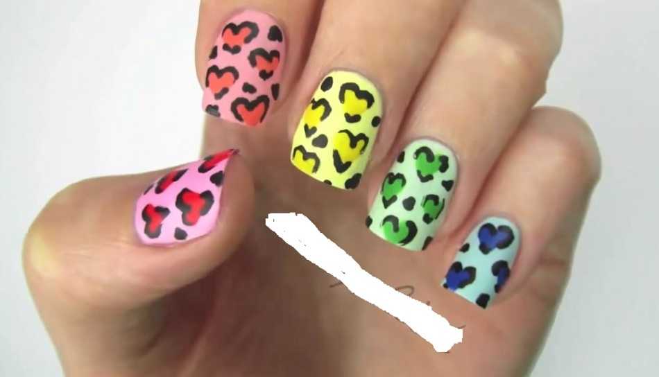 Для этого маникюра Вам понадобится розовый и черный лаки. Покройте первый ноготь розовым лаком, на нем нарисуйте маленькие точки в виде сердечек. Второй ноготь покройте черным лаком, а сердечки сделайте розовым лаком, повторите первый вариант рисунка и продолжайте чередовать.
