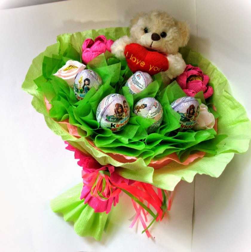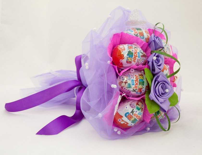 Такой сюрприз покорит сердце любой женщины, начиная с детсадовского возраста. Если вы не знаете, что дарить на предстоящий праздник представительнице слабого пола, смело подхватывайте идею. Сладкий цветочный букет в превосходном исполнении покорит даже самое холодное сердце. Итак, рассмотрим некоторые варианты.