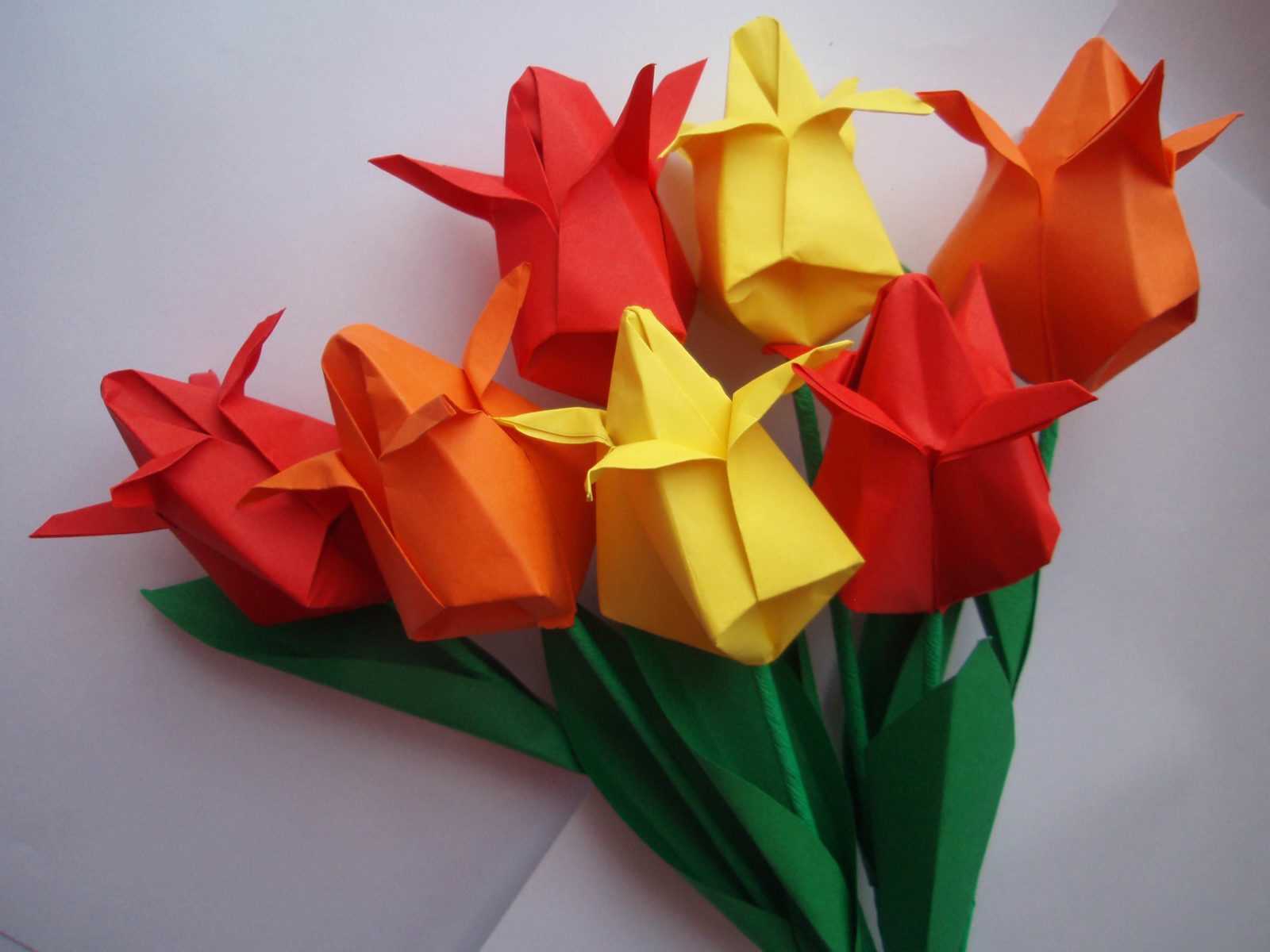 - Готовые цветки, стебли и листья прикрепить на картонную основу. Концы листиков отогнуть.