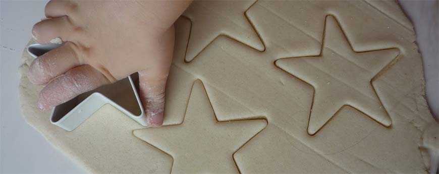 - На этом листе сделайте отпечатки любых формочек для печенья. Это – будущие фигурки из соленого теста.