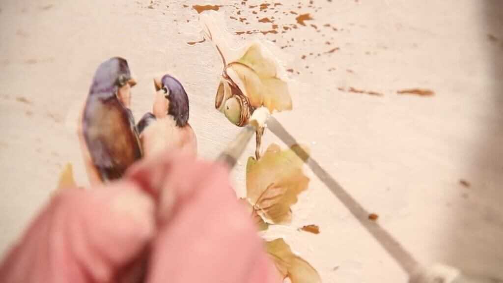 После высыхания поверхности, зафиксируйте все лаком. При выполнении такой работы, каждому слою необходимо давать тщательно просохнуть.