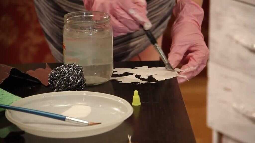 Прежде чем приступать к украшению необходимо провести тщательную подготовку. Декорирование комода предваряется снятием прежней краски либо лакового покрытия. С этой целью на поверхность наносят ацетон, примерно на час покрывают комод клеенкой или пленкой: последнее делается для усиления эффекта.