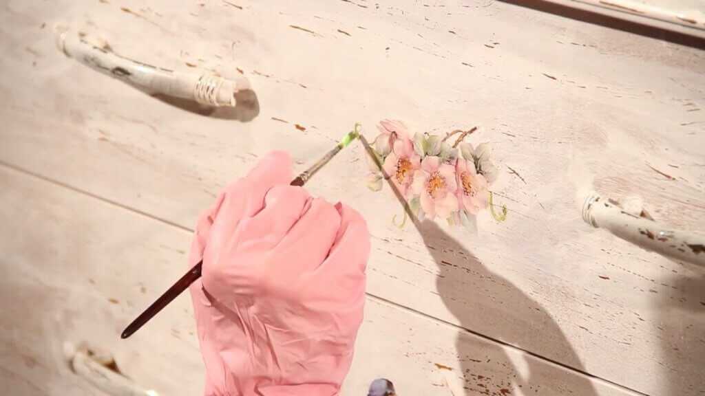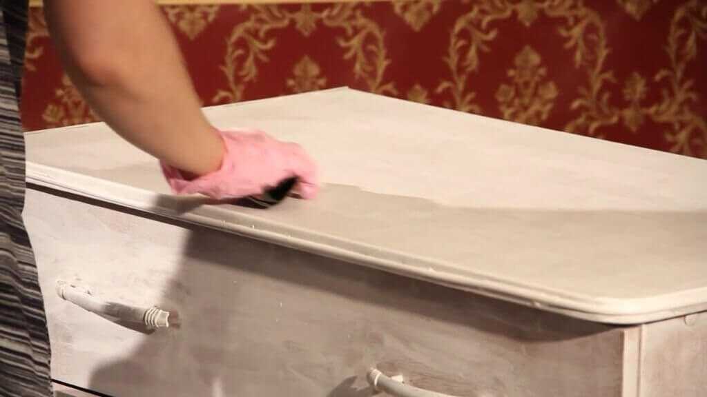 Далее на поверхность комода наносят лак, после чего – 1-2 слоя краски. Заключительный шаг – еще один слой лака.