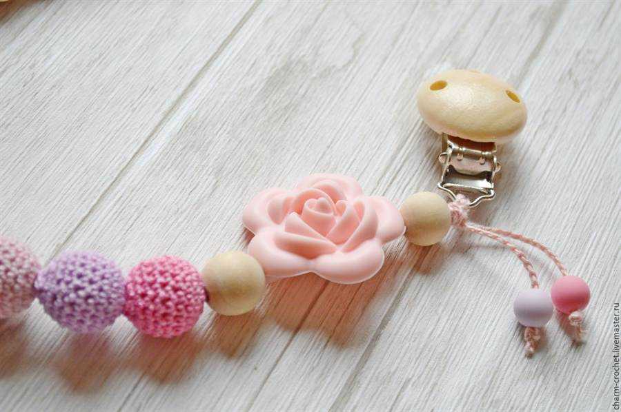Рассмотрим еще один вариант держателя для пустышки, который подойдет нежной девочке.