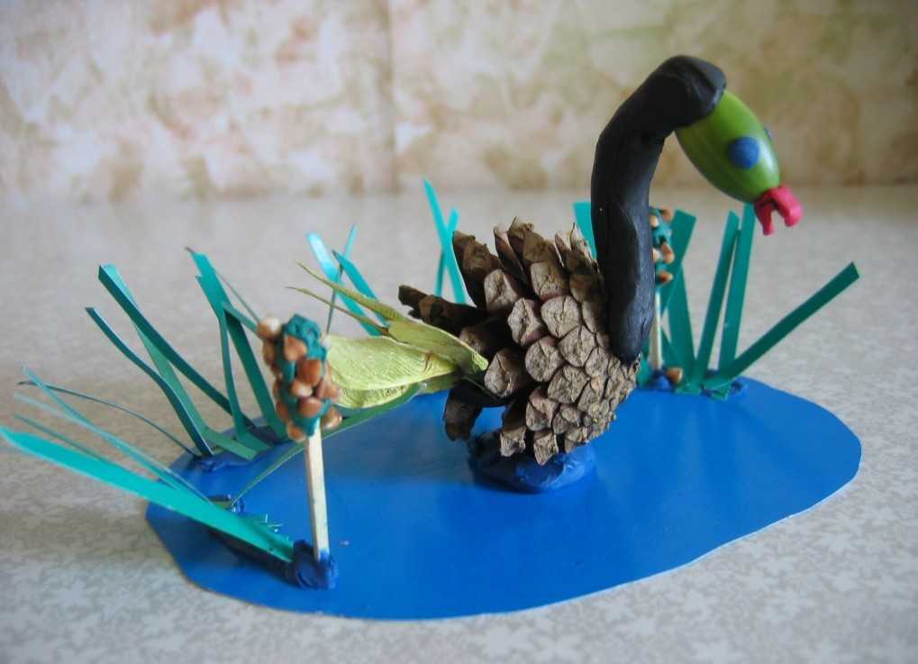 Чтобы скрепить детали поделки, рекомендуется использовать пластилин. А для того, чтобы выделить детали, можно использовать спички, пластиковые трубочки и бусинки.
