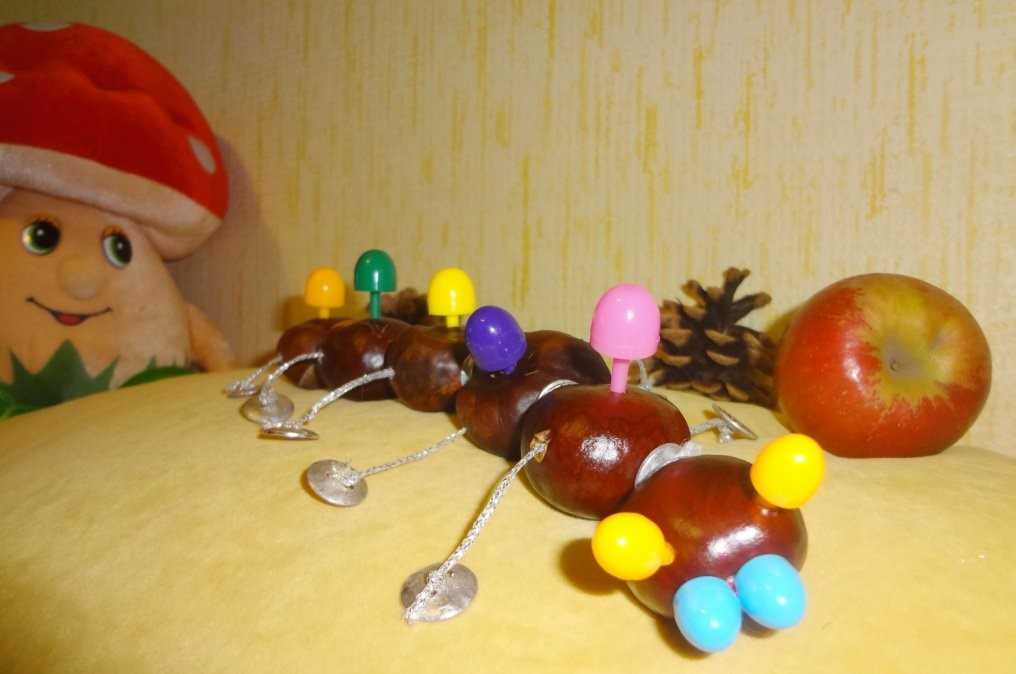 Все эти материалы можно собрать в лесу или в парках у дома. Простейшие поделки можно изготовить из каштана. Используя такой простой материал легко смастерить гусениц, миниатюрных человечков-солдатиков, животных и насекомых.