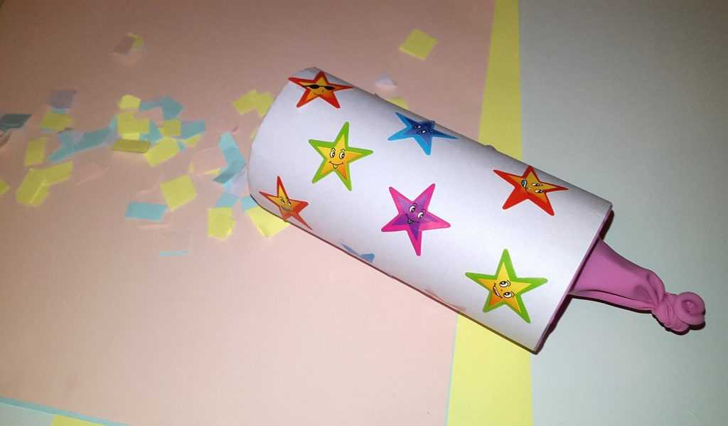 Такой способ не сильно отличается от предыдущего по концепции, но чтобы сделать этот вариант требуется больше действий и элементов. В результате получается хлопушка почти как из магазина.