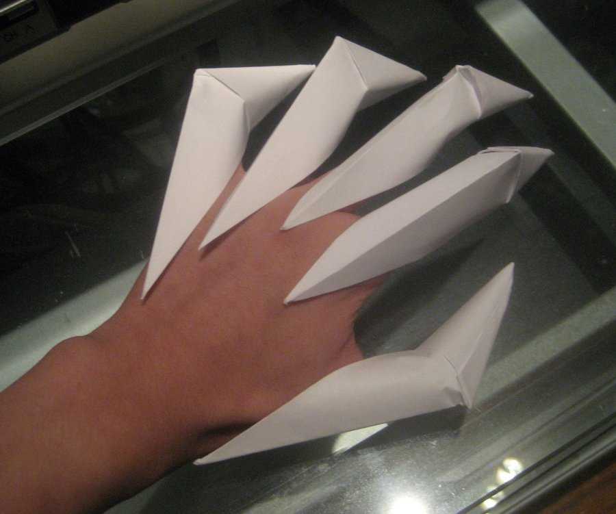 - Когти оригами — отличный бюджетный вариант дополнения к карнавальному костюму.