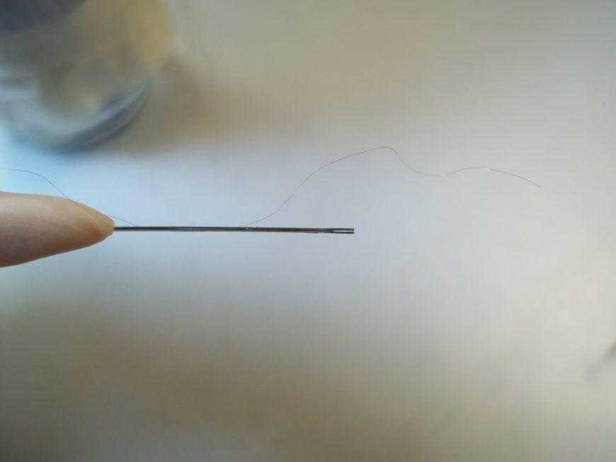 После нанесения клея к получившемуся шву следует приложить иглу. Волосинки следует плотно прижать к игле. Это поможет клею проникнуть среди всех волос. Игла не убирается до тех пор, пока не высохнет клей.