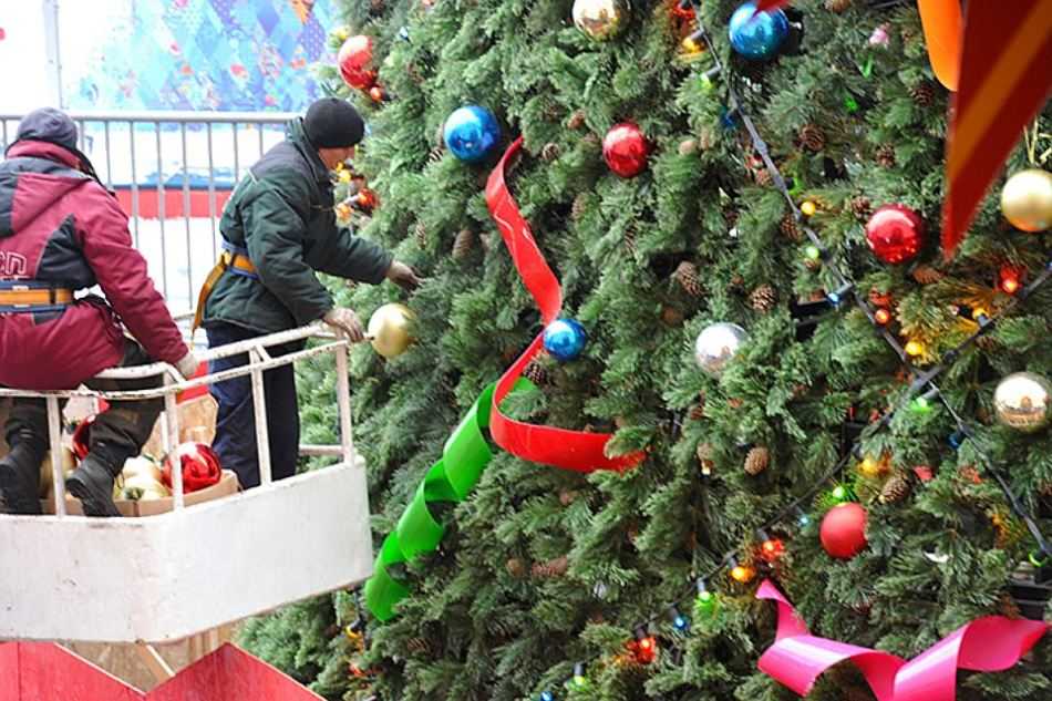 Украсить уличную елку можно при помощи самодельных игрушек. Украшения можно сделать собственными руками из пластиковых бутылок, стаканчиков, из CD-дисков.