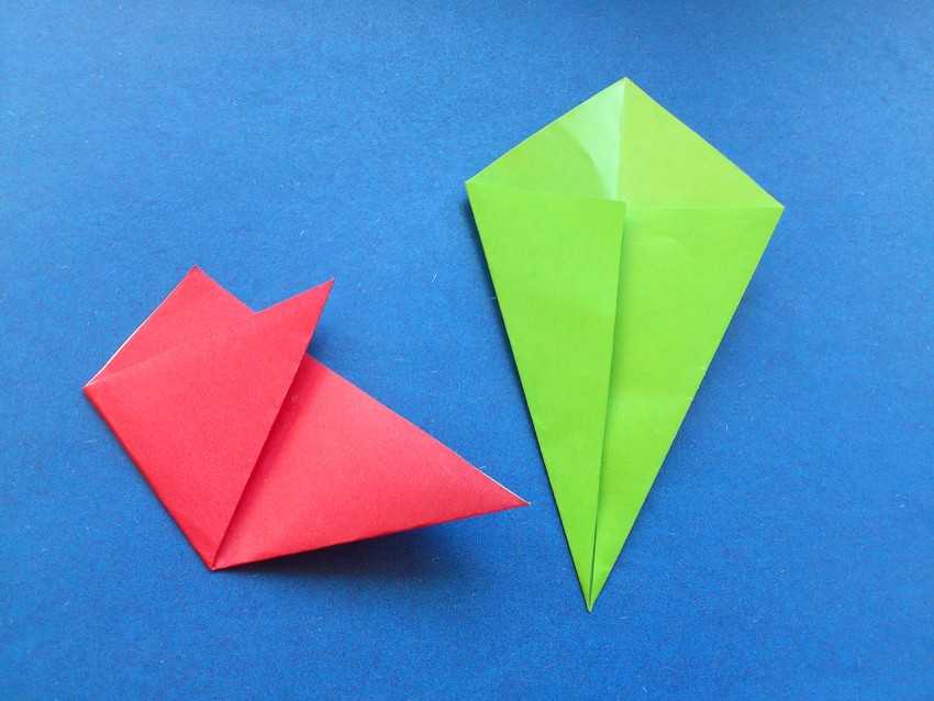 - Согните лист бумаги пополам, перед вами прямоугольник, соедините верхние правый и левый угол внутри фигуры, что бы получился треугольник, рисунок 2;
