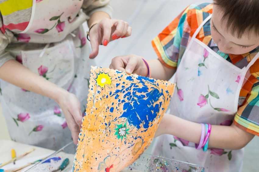 Заключительный этап – перенос рисунка. Это очень ответственное дело, для которого требуется большая аккуратность. Бумагу нужно выбирать плотную, фактурную и ни в коем случае не глянцевую. Лист укладываем на воду, выдерживаем несколько мгновений и снимаем точным движением, чтобы не смазать краску. Кроме бумаги рисунки можно переносить на различные ткани или дерево.