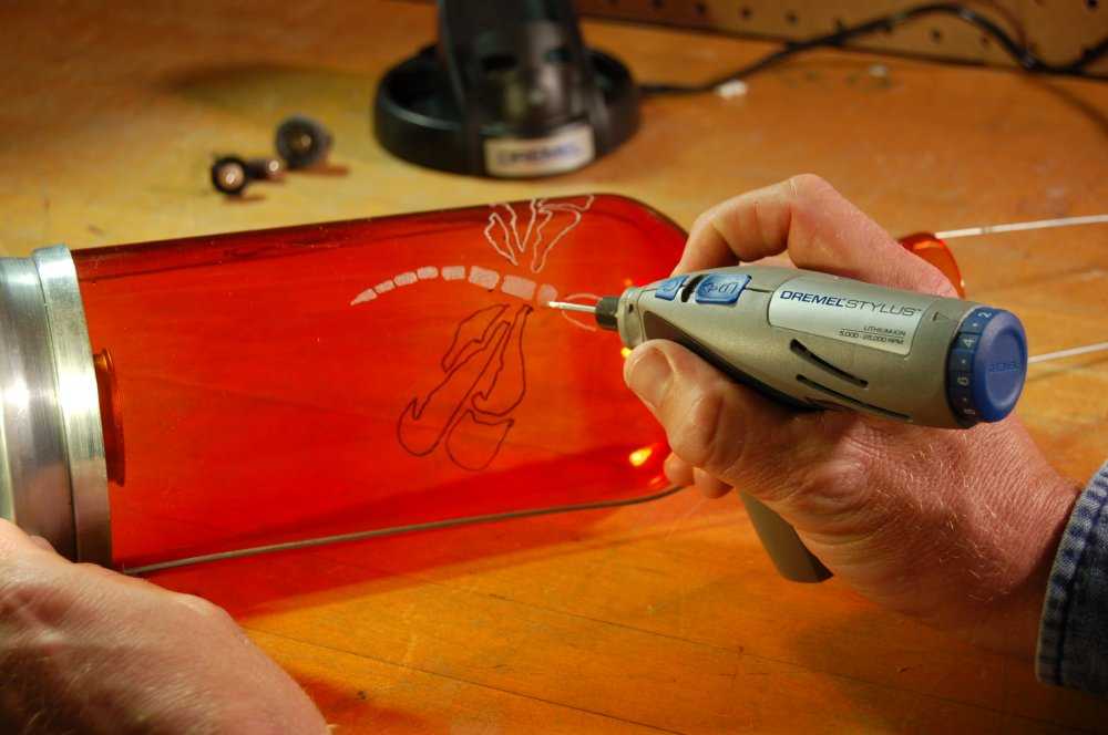 Возьмите инструмент для гравировки и проверьте надежность закрепления насадки. Если вы сталкиваетесь с данным занятием впервые, попробуйте нарисовать несколько узоров на кусочке пластика или старом диске