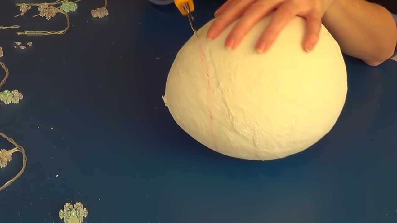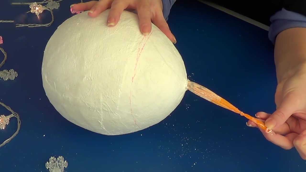 3. После того, как гипсовый бинт хорошо просохнет, маркером рисуем линию, где хотим отрезать часть вазы. Прокалываем шарик и извлекаем его.
