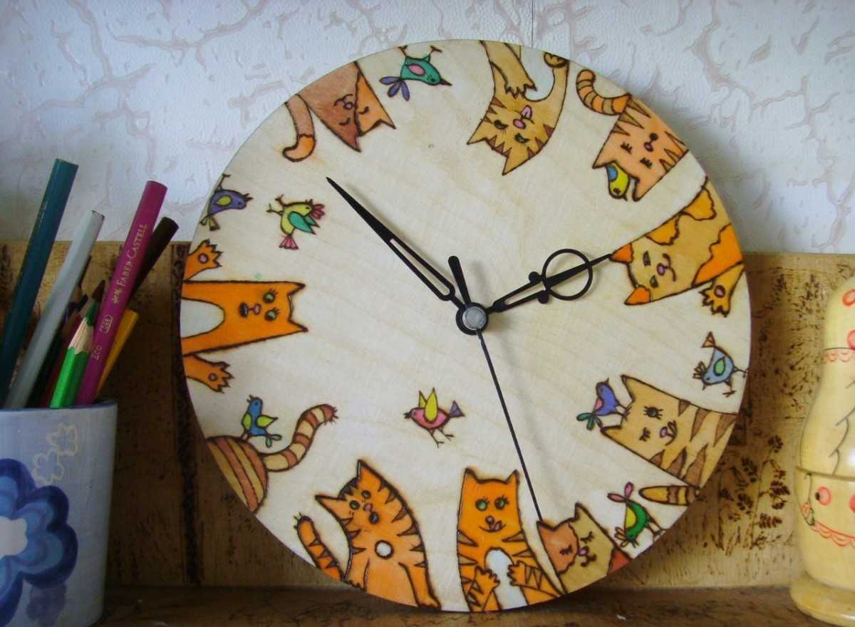 А вот довольно простые часы, которые можно сделать своими руками из куска фанеры.
