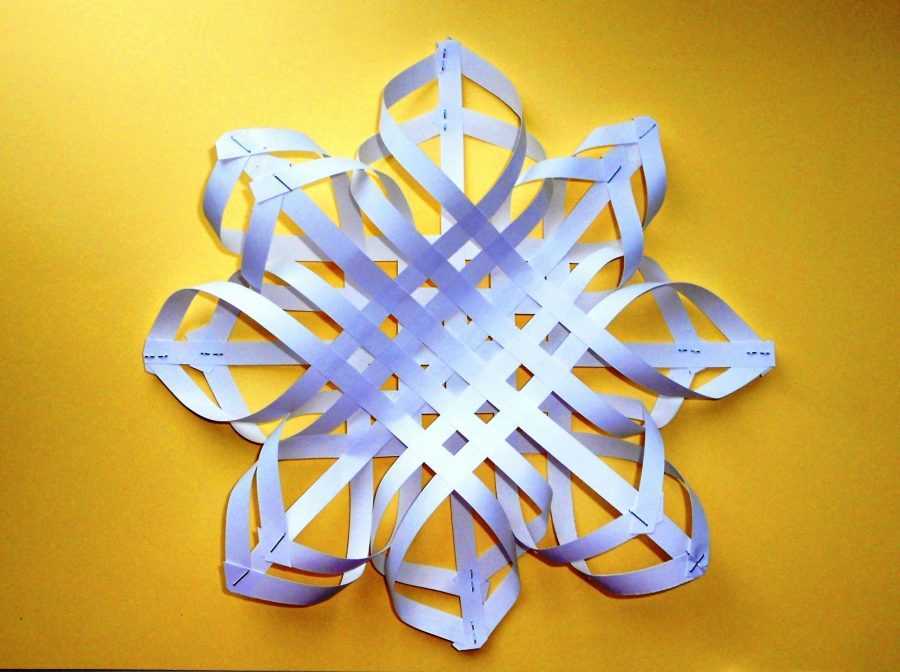 Склеив много полосок крест-накрест посередине и приподняв свободные концы при помощи нитки, просунутой в сделанные в них отверстия, можно получить грушу.