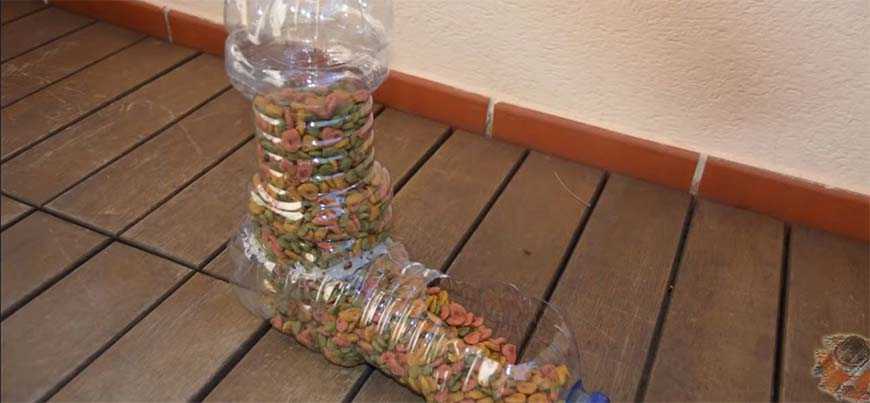 - Если не до конца вырезать боковую часть, получиться сверху козырек, это не даст возможность засыпать в зимнее время корм снегом.