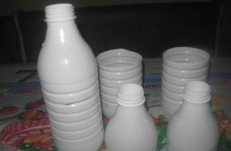 - крышки от пластиковых бутылок и 2 крышки от пятилитровых баклаг.