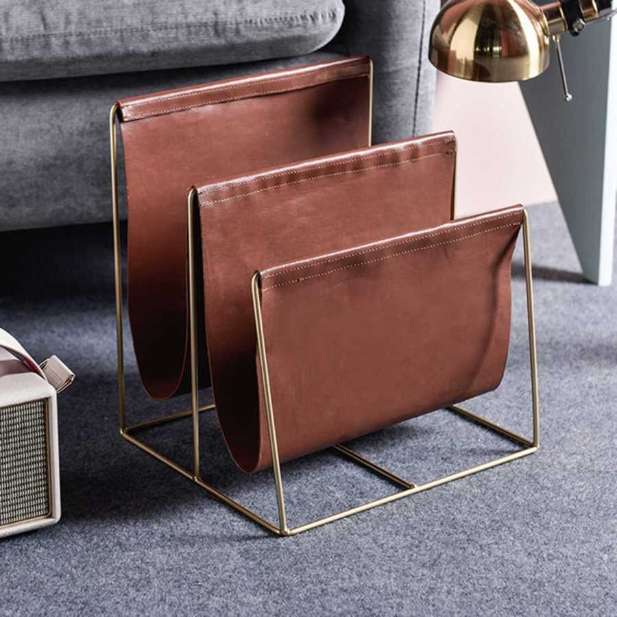 По сути это просто большой прямоугольник из плотной кожи, который крепят в виде гамака под журнальным столиком. В этот гамак можно складывать газеты, журналы или книги, которые вы часто читаете. Такое приспособление позволяет экономить пространство, содержать гостиную в порядке и использовать ненужный материал.