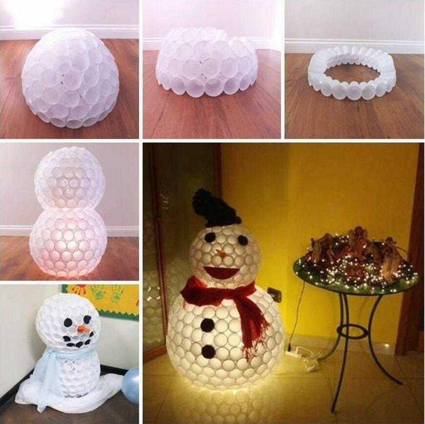 Маленький снеговик с подсветкой: всего два пластиковых стакана