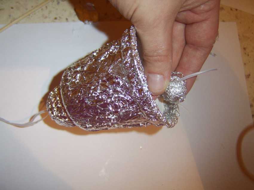 Из плотного картона коричневого цвета сделать конус. Отрезать ручки ложек. Наклеивание производится с нижнего ряда с помощью клеевого пистолета. Ряды выполняются в шахматном порядке. Приклеивается ложка областью ручки к основанию.