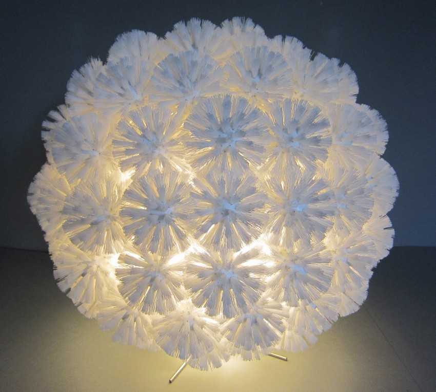 Такой милый аксессуар станет изюминкой интерьера. Особенно уместно светильник из пластмассовых ложек в форме ананаса будет смотреться в детской комнате.