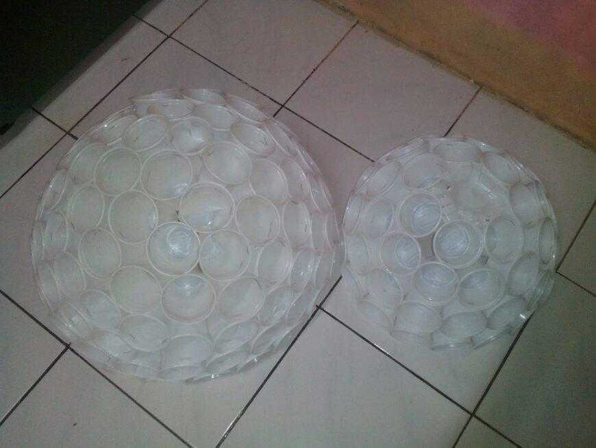 Из стаканчиков можно сделать оригинальный плафон люстры