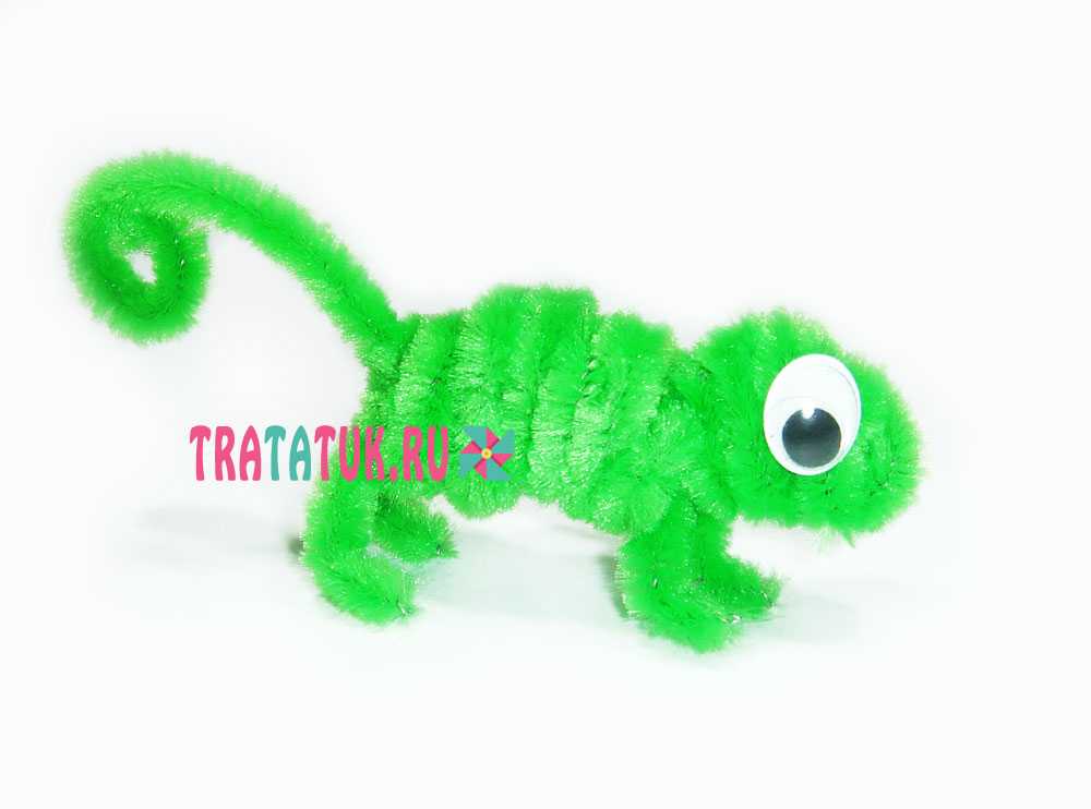 Пополнит коллекцию поделок из синельной проволоки еще один интересный персонаж – хамелеон. Поделка не сложная, а представленный инструктаж с подробными фото поможет достичь желаемого результата.