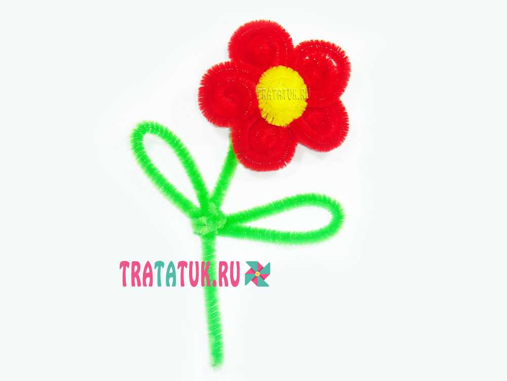Способов создания цветка из этого материала очень много, но этот, наверное, самый простой вариант, отличная поделка для детей. Подбирайте интересные расцветки и создавайте целые букеты замечательных цветочков.
