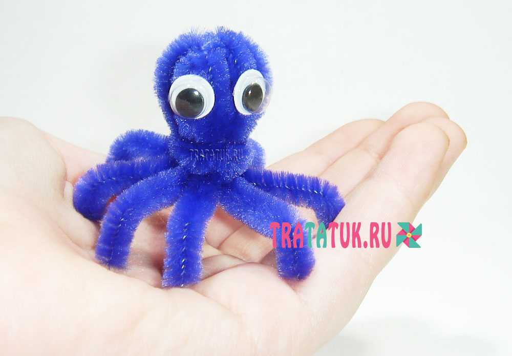 Чуть больше времени понадобится для поделки из мохнатой проволоки – осьминог.