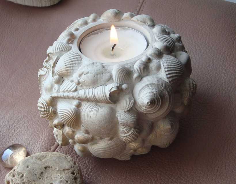 Свечи – возьмите одну или несколько объемных ракушек. Закрепите внутри фитиль, залейте его воском. Стильный аксессуар для ванной или спальни готов.