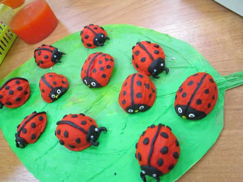 из скорлупы грецкого ореха можно сделать очаровательную божью коровку