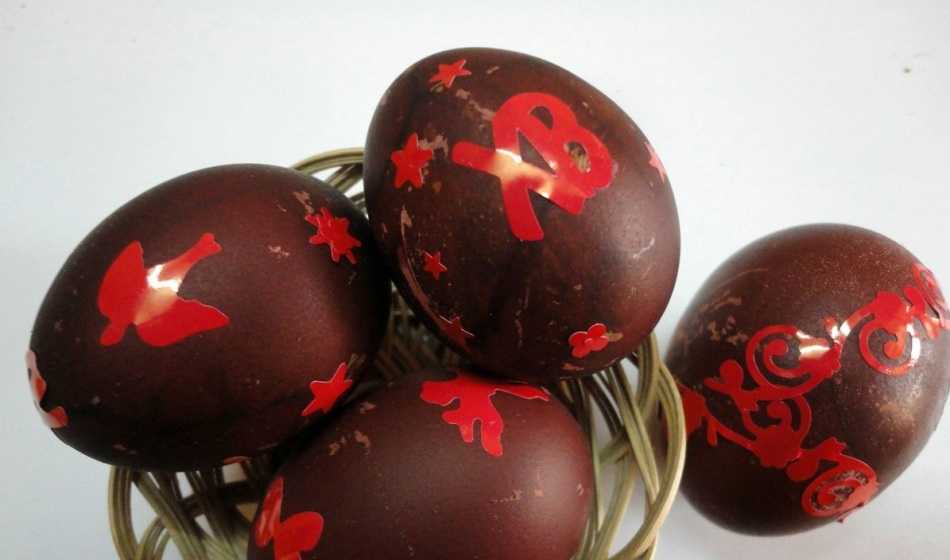 - Утром в настой положите вареные яйца до получения нужного цвета