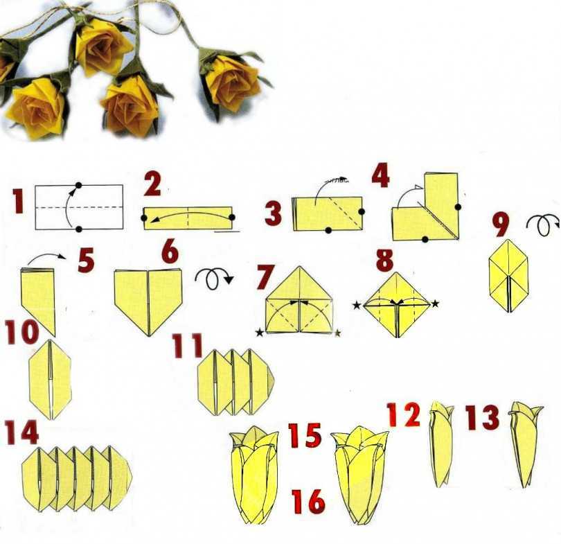 Оригами — это искусство складывать фигурки, пришло к нам из Древнего Китая. Создать оригами розочку, можно следуя специальным схемам.