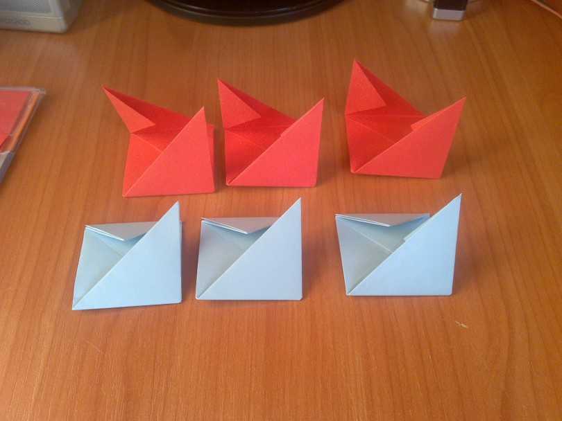 - Теперь складываем каждый квадрат бумаги вчетверо, чтобы у нас получился квадрат меньшего размера.