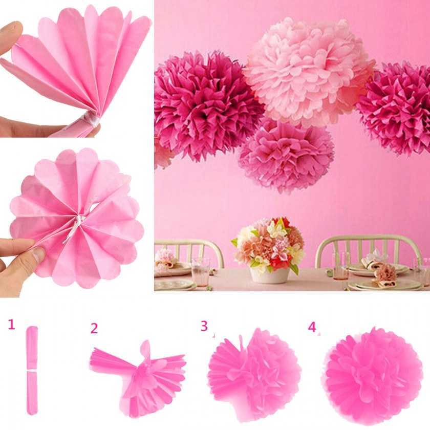 Помещение, где проходит праздник, как правило, украшают воздушными шарами, цветочными гирляндами, лентами и невесомыми бумажными помпонами. И если вы думаете, что для того, чтобы вот также украсить свой дом, вам придется заказывать декорации в магазине, то вы заблуждаетесь. На самом деле делать помпоны из бумаги своими руками невероятно просто. Вот прям настолько легко, что вы сможете производить бумажные помпоны со скоростью конвейера.