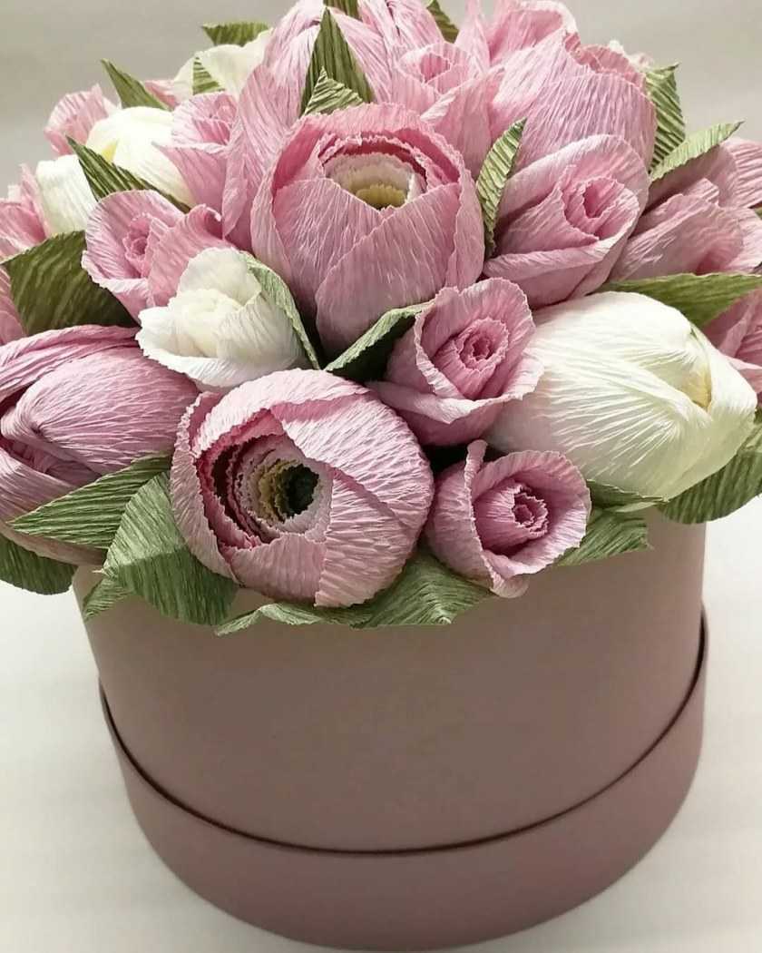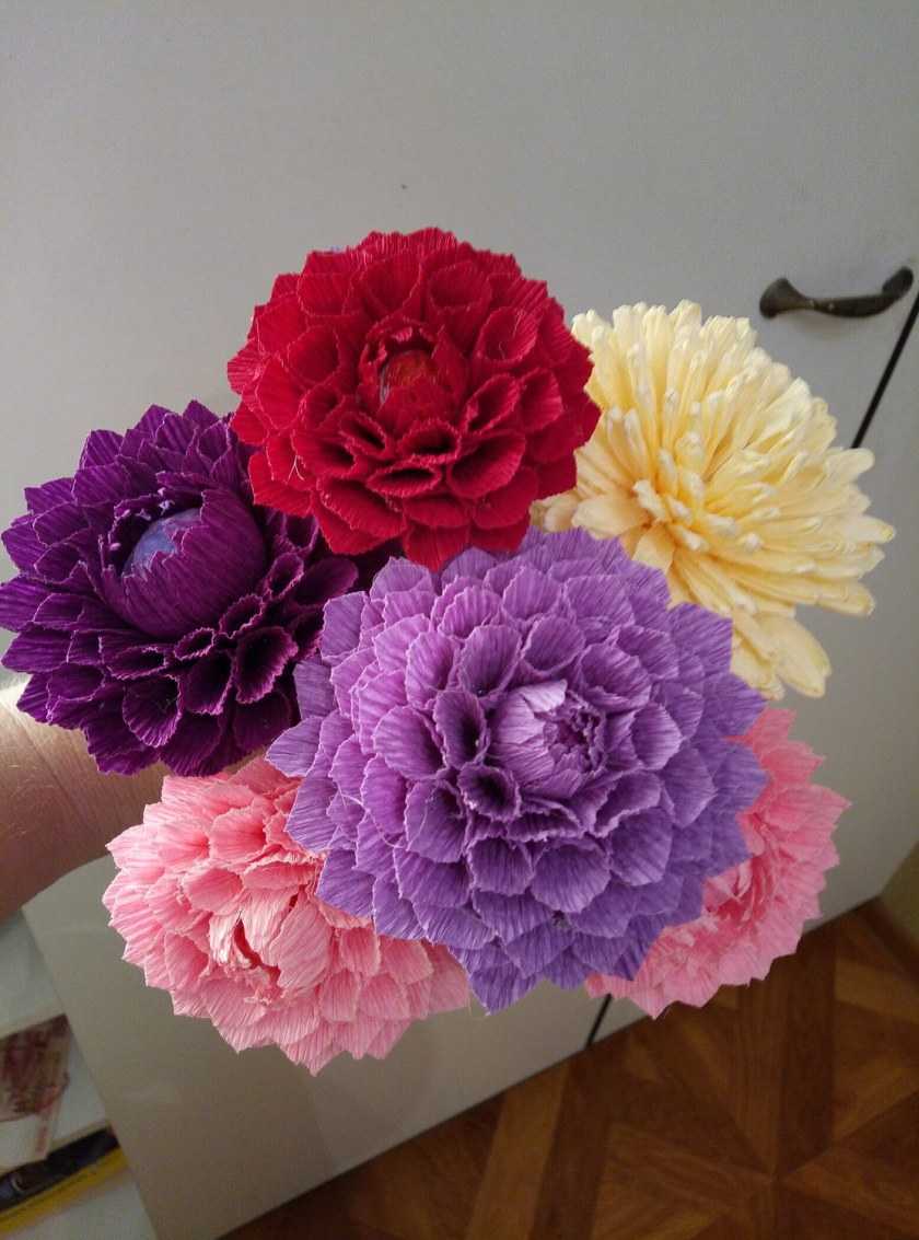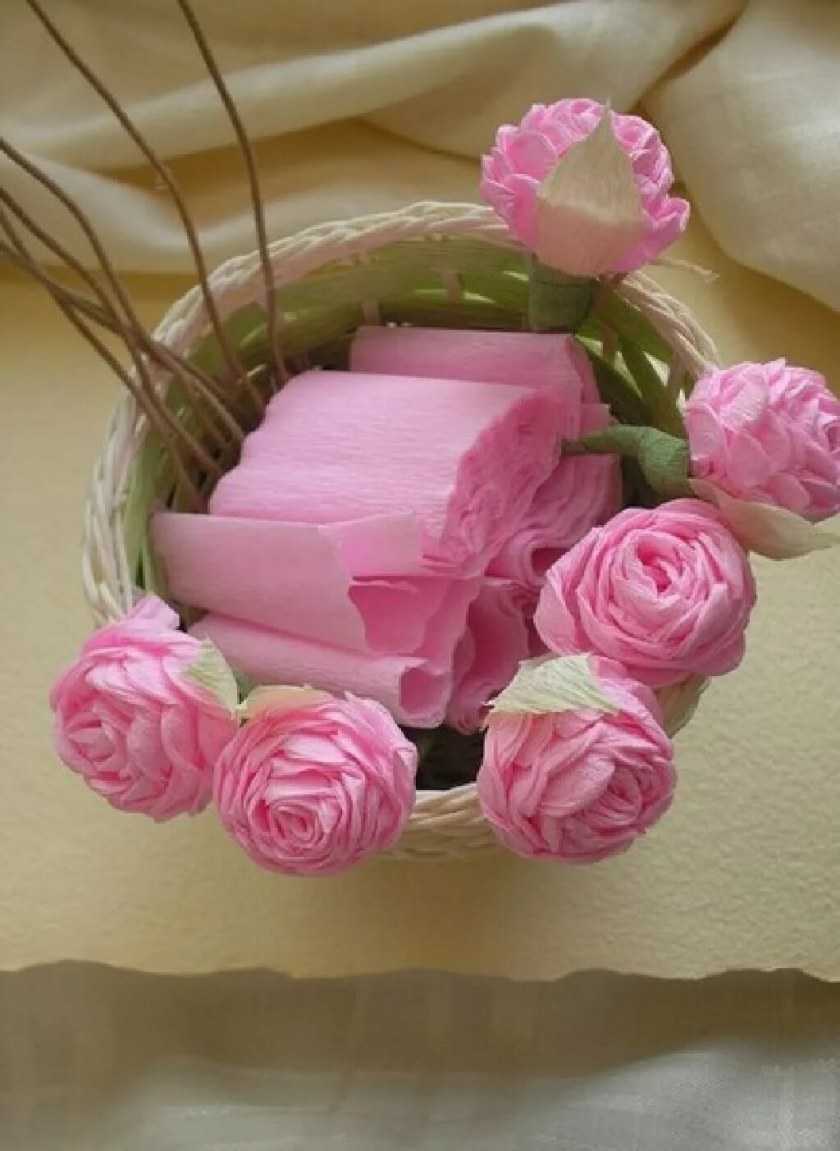 Чаще всего из гофробумаги делаются цветочки. Розы и пионы – самый любимый выбор мастеров. Конечно, изготовление цветочных композиций – отдельная тема. Если вы хотите сделать красивые розы, просмотрите не одно видео, или же пусть фото-инструкция сориентирует вас в технике.