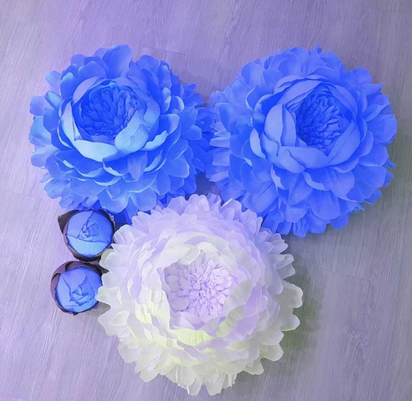 Величина помпона зависит от размера используемого листа гофрированной бумаги. Самые большие можно сделать, используя полную ширину рулона, а самые маленькие имеют размер, выбранный мастером.